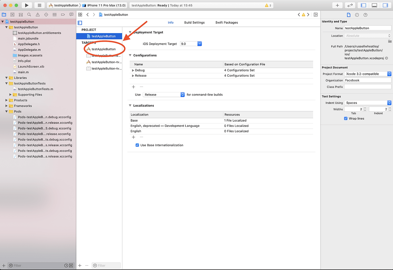 target에서 프로젝트를 선택해준다.