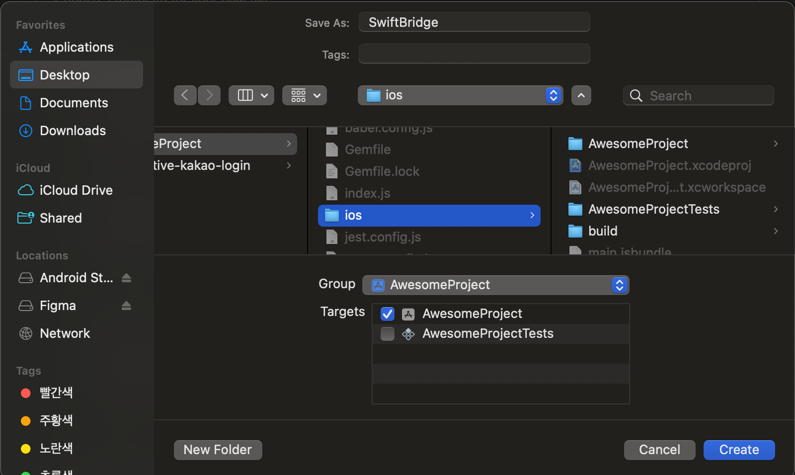 ios폴더안에 SwiftBridge명칭으로 파일을 만들어주면 된다.