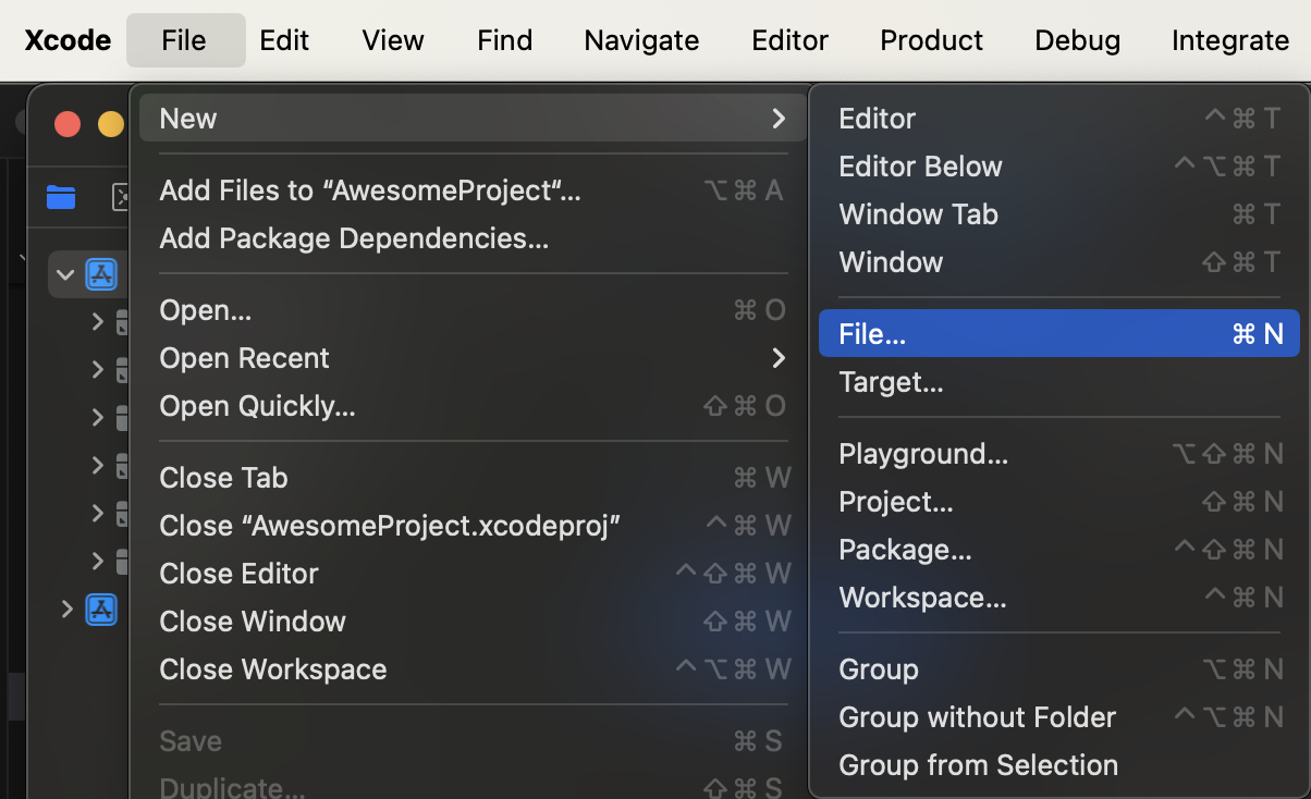 xcode에서 파일을 만들 수 있는데, file => new => file을 통해서 파일을 생성해준다.
