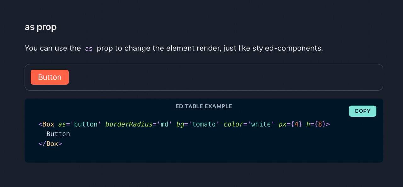 <MyComponent as="button">Hello Polymorphic!<MyComponent>