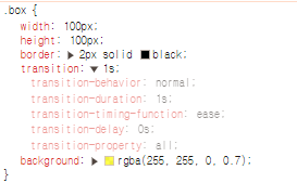 적용된 css를 확인해보면 transition에 1s가 들어가 있고 해당 속성이 축약 속성이라는 것을 알 수 있다.