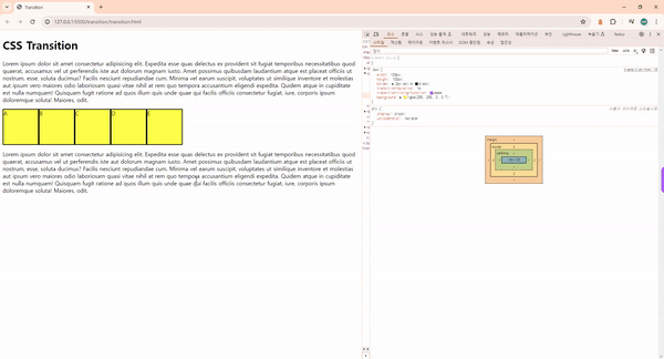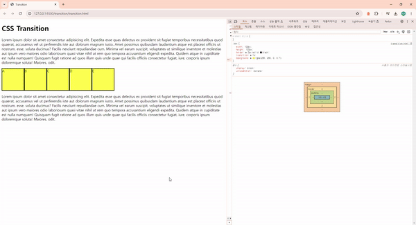 transition을 줬을 때와 주지 않았을 때를 바로 확인할 수 있다.
