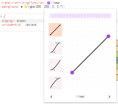 아래로 내려보면 duration, timing-function, delay, property 같은 속성들이 있다.
