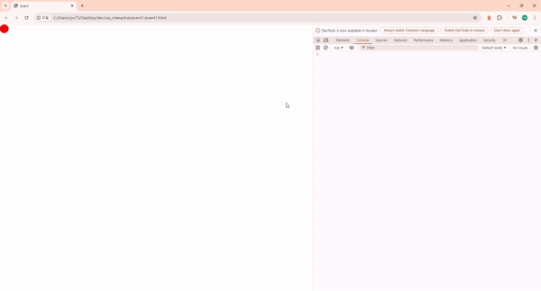생각했던 애니메이션이 동작하는 것을 확인할 수 있다. 하지만 한가지 공의 중심이 마우스 포인트가 아니라