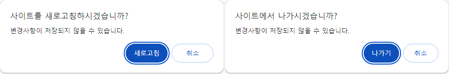 페이지를 이탈하는 경우 경고 문구를 나타낼 계획이다.